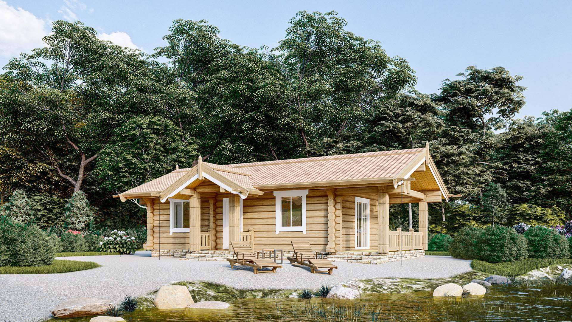 Мечта миллионов людей о комфортном уединённом домике в деревне, нашла отражение в проекте сруба загородного бревенчатого дома из лафета СС45. Комфортабельная комната в 18 квадратных метров найдётся не в каждой городской квартире. В комнате может быть расположено всё необходимое для жизни, комфортного отдыха и время препровождения. Зал совмещённый с кухней и прямой выход из зала на террасу, дарят ощущения свободы и безграничного пространства. А терраса становится дополнительной жилой площадью и позволит пить горячий чай из самовара наслаждаясь свежим воздухом. Дом — истинная мечта двух из трёх городских жителей уставших от копоти и смога шумного города и желающих уединения. Так же сохранится возможность встретиться с друзьями, посидеть в просторном зале за большим столом и конечно обустроить место в зале для ночлега засидевшихся гостей. Комфорт и уединение — это главное достоинство небольшого сруба дома из лафета выполненного по проекту СС45